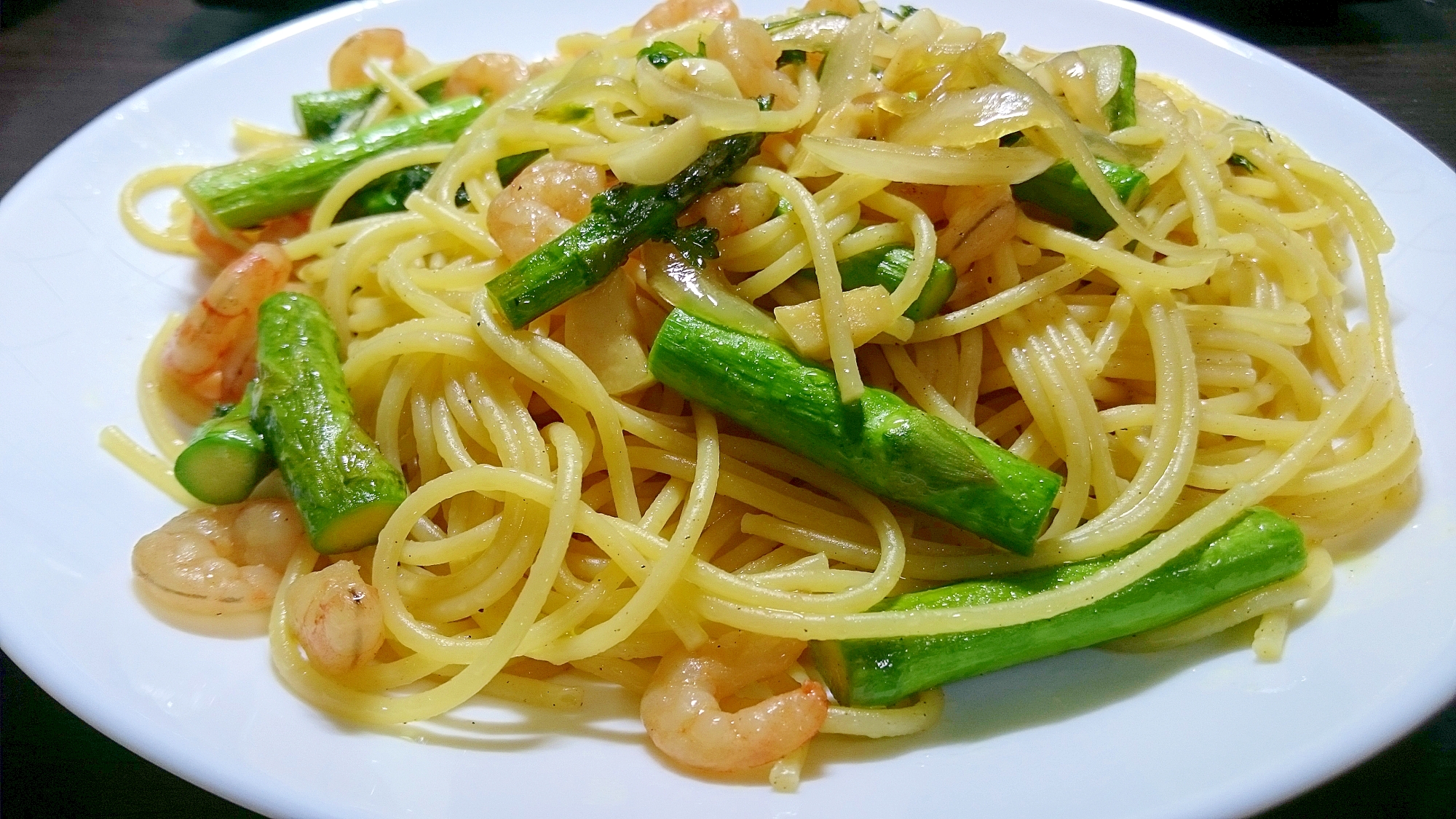おしゃれ自炊ランチ 小エビとアスパラのパスタ レシピ 作り方 By Kjkitchen 楽天レシピ