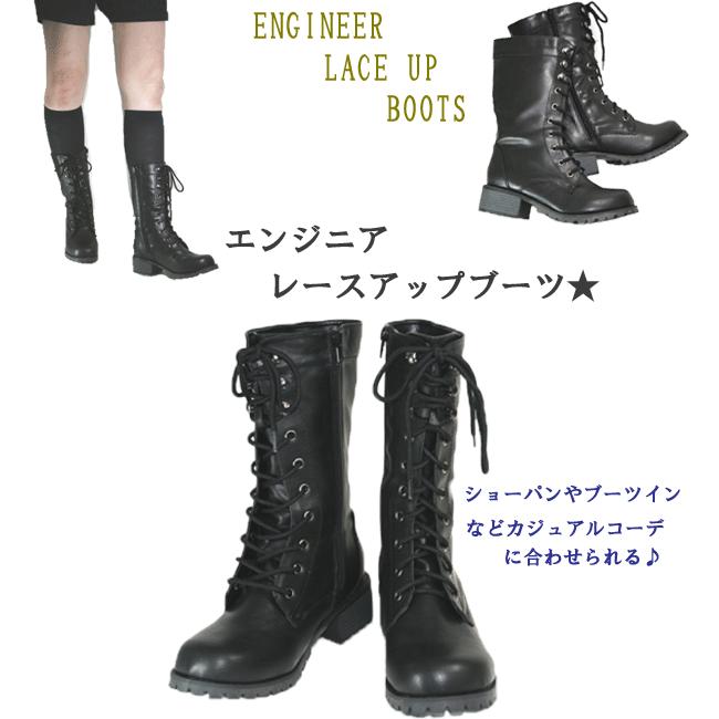 ミリタリーボーイズコーデレディースブラックレースアップミドル丈ワークブーツ 靴のミィーミ オンラインショップ 通販 Yahoo ショッピング